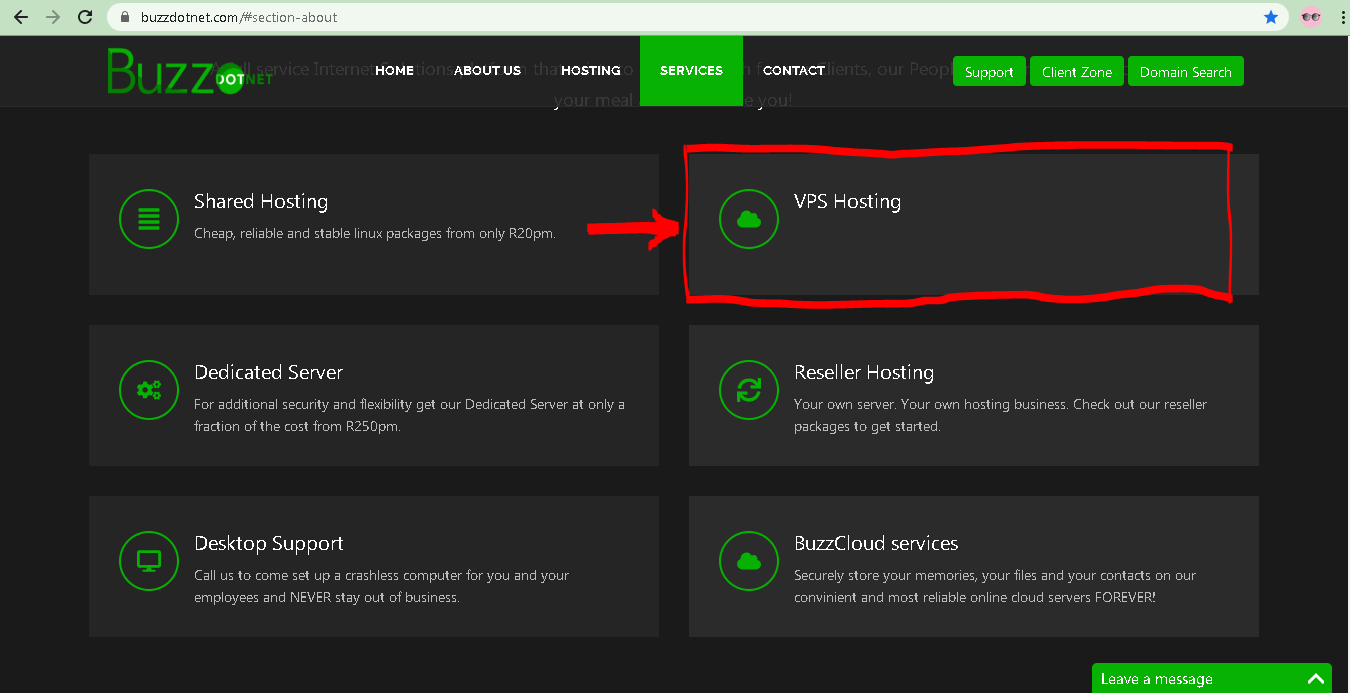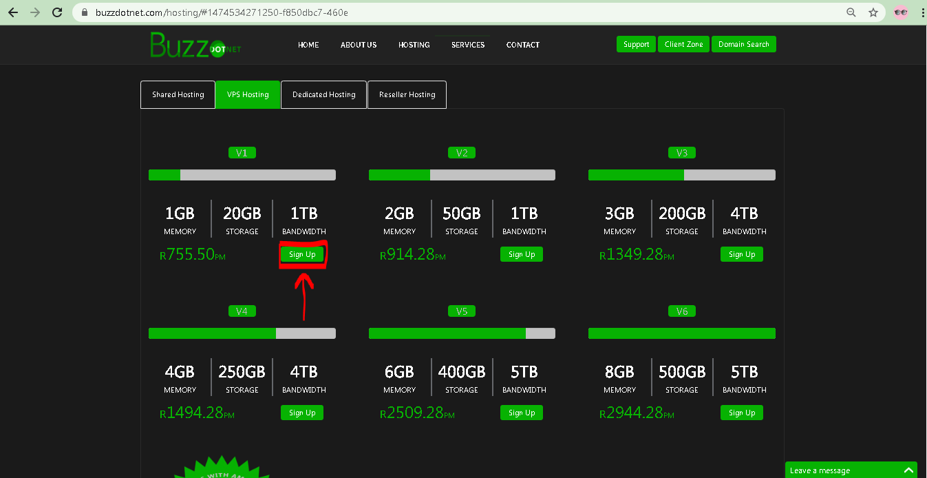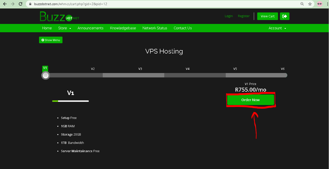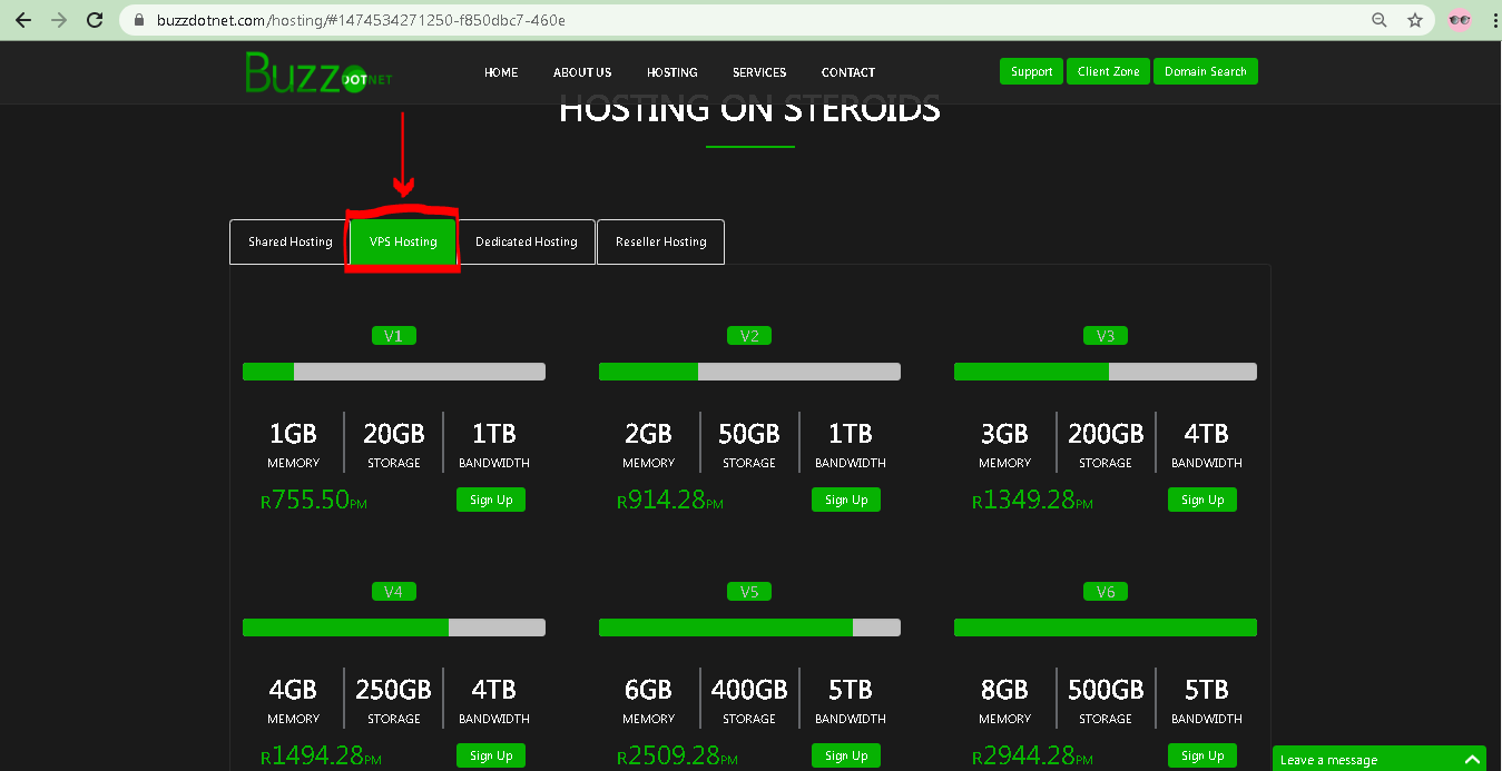 2. Choose VPS Hosting as shown (Red Box)