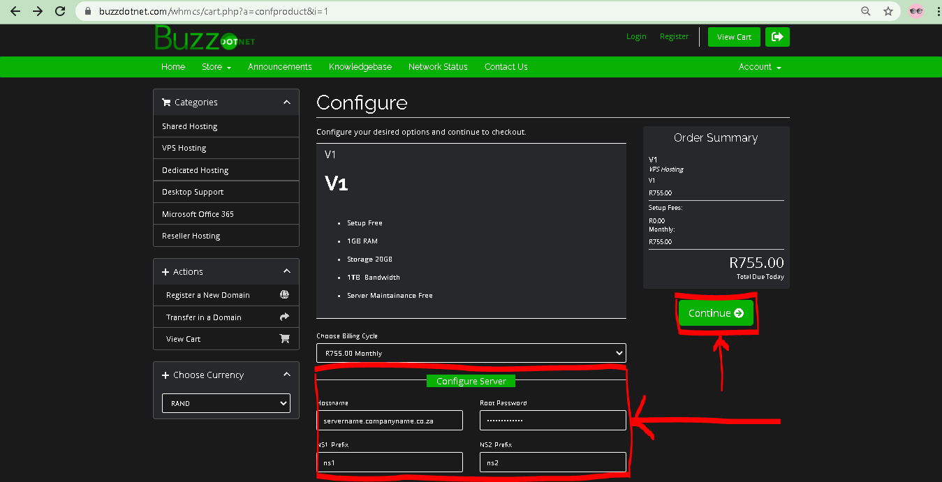 7. Redirected to below page – Fill in your server details and Click continue as shown (Red Box)
