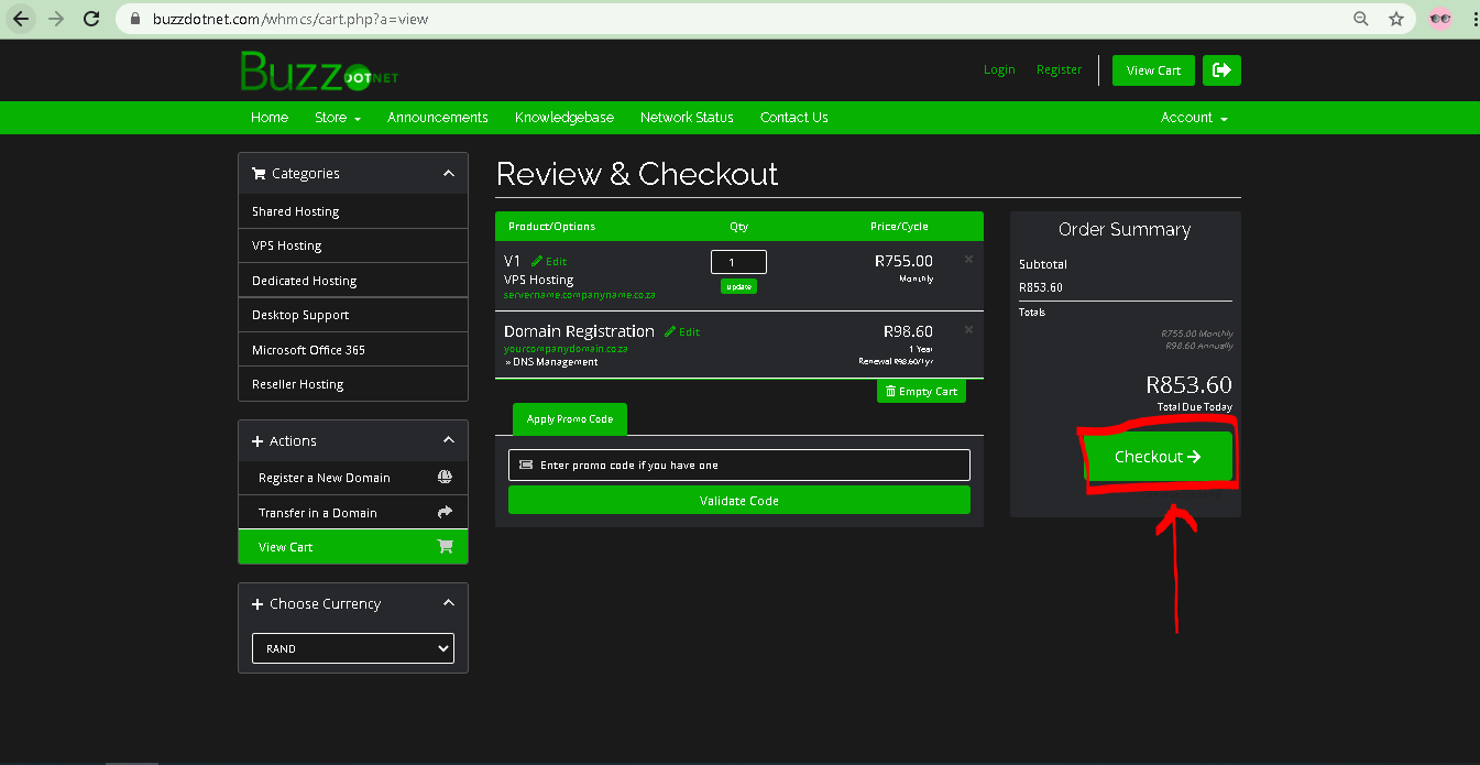 9. Redirected to below page – Click checkout as shown (Red Box)
